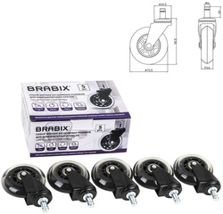 Колеса (ролики) для кресла BRABIX, мягкие, резиновые, d 76 мм, 5 шт/уп, шток d 11 мм, в коробе