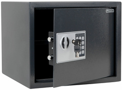 На сейф установлен электронный кодовый замок со световой и звуковой индикацией, позволяющий запрограммировать свой уникальный код (от 4 до 8 знаков). В комплект входит аварийный мастер-ключ на случай, если забыли код или вышли из строя элементы питания. Подробная инструкция по эксплуатации замка в комплекте.