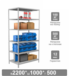 Стеллаж металлический BRABIX MS 220, 2200х1000х500 мм, 6 полок