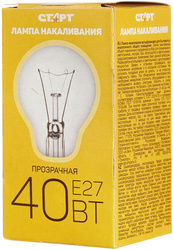 Лампа накаливания СТАРТ стандартная/прозрачная, 40W E27 10 шт/уп