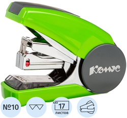 Степлер Комус Light-Force предназначен для надежного и качественного скрепления документов в офисе и дома. Настольный степлер выполнен в пластиковом корпусе зеленого цвета и обладает средними размерами. Степлер Комус одновременно сшивает до 17 листов бумаги плотностью до 80 г/кв.м. Степлер скрепляет бумагу плоским способом. Функция плоского сшивания позволяет до 30% уменьшить толщину документов. Модель оснащена антистеплером. Степлер совместим со скобами № 10. Глубина закладки бумаги — 20 мм (2 см). Вместимость лотка для скоб: 100 скоб размером № 10. Размер изделия: 143×91×32 мм. Благодаря технологии Less Effort при сшивании прилагается до 50% меньше усилий.
