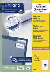 Этикетки универсальные AVERY ZWECKFORM, 70х29,7 мм, 30 шт на листе, белые, 03489-100