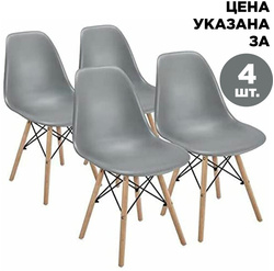 Стулья BRABIX Eames CF-010, пластик серый, опоры дерево/металл, 4 шт/уп