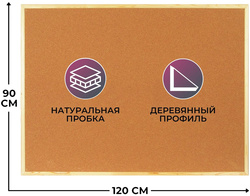Материал покрытия: натуральная пробка. Профиль рамы из натуральной древесины, с высоким качеством обработки, без сколов и сучков. Предназначена для наглядной демонстрации информации на бумажных листах (рисунков, схем, таблиц, фотографий и т. д.) при проведении презентаций, совещаний, лекций, семинаров, тренингов и прочих подобных мероприятий, а также для информирования.