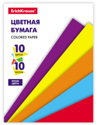 Бумага цветная ErichKrause, 10 цветов, 10 листов, А4, немелованная, игрушка-набор для детского творчества