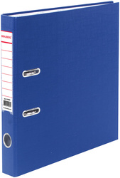 Папка формата А4 с вертикальной ориентацией изготовлена из высококачественного износоустойчивого картона с ПВХ покрытием синего цвета. Ширина корешка в 90 мм позволяет разместить до 750 листов. Прорези для колец на внешней крышке позволяют оставаться папке закрытой даже при большом количестве бумаг, а надежный арочный механизм легко справляется с ежедневными нагрузками. Корешок папки снабжен этикеткой для маркировки содержимого, что позволяет структурировать информацию.