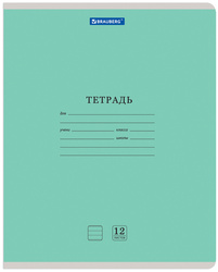 Тетрадь BRAUBERG Классика New, 12 листов, линия, обложка картон, зеленая