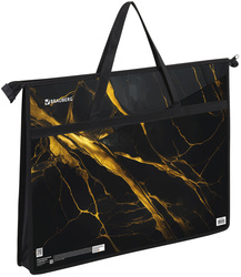Папка для рисунков и чертежей с ручками BRAUBERG, А3, пластик, молния сверху, «Black&gold marble»