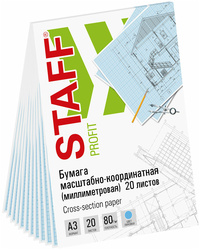 Миллиметровая бумага STAFF, А3, голубая, 20 листов, 80 г/м2, планшет