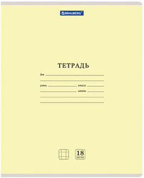 Тетрадь BRAUBERG Классика New, 18 листов, клетка, обложка картон, желтая
