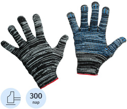 Перчатки трикотажные с ПВХ Точка, 4 нити 42г 10кл графит 300 пар/уп