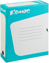 Короб архивный Комус изготовлен из микрогофрокартона Т23 бирюзового цвета. Предназначен для краткосрочного хранения документации.