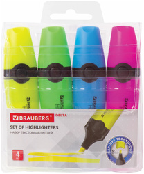 Текстовыделитель BRAUBERG «DELTA», линия 1-5 мм, 4 цвета, ассорти