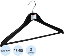 Вешалка-плечики деревянная ATTACHE (КОМУС) с перекладиной, размер 48-50, черный, 3 шт/уп
