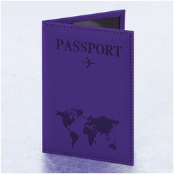 Модель выполнена из экокожи фиолетового цвета с эффектом soft-touch и украшена тиснением в виде надписи "Passport" – на обложку нанесено изображение самолета и карты мира. Имеет простроченные края и мягкую изолоновую вставку. На внутреннем развороте расположены два кармана из прозрачного пластика. Благодаря компактным размерам 98х141 мм документ в обложке удобно носить с собой.