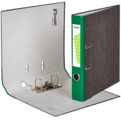 Папка-регистратор КОМУС мрамор металлический кант, ширина корешка 50 мм, черный мрамор, зеленый корешок