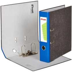 Папка-регистратор КОМУС мрамор металлический кант, ширина корешка 75 мм, черный мрамор, синий корешок