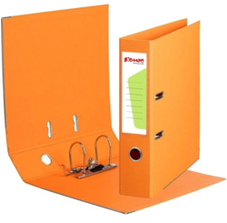 Папка-регистратор ’Комус’ из коллекции ’Стандарт’ с арочным механизмом изготовлена из картона, с внешней и внутренней стороны оклеена бумвинилом оранжевого цвета. Формат А4. Арочный механизм произведен в Чехии. Нижние края защищены от повреждений металлическим кантом. Благодаря прорезям для колец на внешней крышке папка остается закрытой даже при большом количестве бумаг. На корешке шириной 75 мм есть карман со сменной этикеткой и кольцо для захвата. Папка-регистратор ’Комус’ вмещает до 480 листов стандартной плотности.