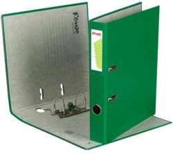 Папка-регистратор ’Комус’ из коллекции ’Экономи’ имеет надежный арочный механизм, произведенный в Чехии. Она предназначена для хранения большого количества документов в офисе, государственном учреждении и дома. Формат А4, размер — 317×280 мм. Изготовлена из плотного картона, покрытого бумвинилом зеленого цвета. Внутренняя вклейка бумажная. Предусмотрен реестр на внутренней обложке папки. Нижние края папки защищены от повреждений металлическим кантом. На корешке шириной 50 мм есть карман со сменной этикеткой и кольцо для захвата. Благодаря прорезям для колец папка-регистратор ’Комус’ остается закрытой даже при большом количестве бумаг. Вмещает до 350 листов.