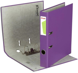 Папка-регистратор ’Комус’ из коллекции ’Экономи’ имеет надежный арочный механизм, произведенный в Чехии. Она предназначена для хранения большого количества документов в офисе, государственном учреждении и дома. Формат А4, размер — 317×280 мм. Изготовлена из плотного картона, покрытого бумвинилом фиолетового цвета. Внутренняя вклейка бумажная, предусмотрено поле для записей. Нижние края папки защищены от повреждений металлическим кантом. На корешке шириной 50 мм есть карман со сменной этикеткой и кольцо для захвата. Благодаря прорезям для колец папка-регистратор ’Комус’ остается закрытой даже при большом количестве бумаг. Вмещает до 350 листов.