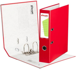 Папка-регистратор ’Комус’ из коллекции ’Экономи’ подходит для хранения большого количества документов. Формат А4. Изготовлена из плотного картона, покрытого бумвинилом красного цвета. Внутренняя вклейка бумажная, предусмотрено место для записей. Папка вмещает до 480 листов. Арочный механизм произведен в Чехии. Нижние края папки защищены от повреждений металлическим кантом. На корешке шириной 75 мм есть карман со сменной этикеткой и кольцо для захвата. Благодаря прорезям для колец на внешней крышке папка-регистратор ’Комус’ остается закрытой даже при большом количестве бумаг.