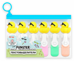 Текстовыделитель с топперами FUNSTER (ФАНСТЕР), «КРУТЫЕ УТЯТА», линия 1-4 мм, 6 цветов, пастель, ассорти