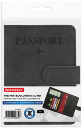 Обложка для паспорта BRAUBERG на магните с защитой 9 карманов, 149х106, экокожа, черный