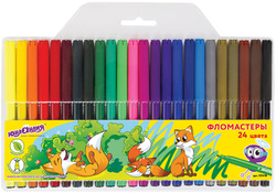 Обладают яркими насыщенными цветами в количестве 24 штук. Удобная круглая форма корпуса, длина которого 139 мм, а диаметр - 8,5 мм. Благодаря толщине линии письма 1 мм и диаметру пишущего узла 2,1 мм процесс раскрашивания становится легким. Длина письма составляет 600 м: такого расхода хватит надолго. Фломастеры изготовлены на водной основе, поэтому они безопасны и легко смываются с большинства материалов и кожи. Наконечник, устойчивый к продавливанию, не проваливается внутрь корпуса и не деформируется даже при сильном нажатии. Полипропиленовый корпус значительно продлевает срок службы фломастеров. Колпачок оснащен специальными прорезями для вентиляции, которые делают использование фломастеров более безопасным. Рекомендованы для детей от 3-х лет.