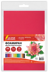 Пористая резина/фоамиран ОСТРОВ СОКРОВИЩ, А4, 1 мм, НАБОР, 15 листов, 15 цветов, яркие цвета