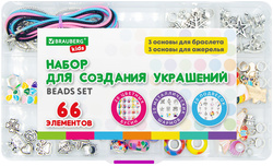 Набор для создания бижутерии и украшений BRAUBERG KIDS, 66 элементов Ассорти в пластиковом боксе, бусины, шармы