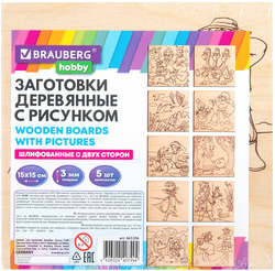 Заготовки деревянные для выжигания BRAUBERG HOBBY, Сказочные мотивы, 5 шт., 10 рисунков, 15х15 см