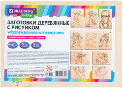 Заготовки деревянные для выжигания BRAUBERG HOBBY, «Для мальчиков», 5 шт., 10 рисунков, 15х21 см
