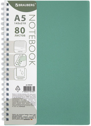 Тетрадь на силиконовой спирали с пластиковой обложкой BRAUBERG, А5, 80 листов, клетка, зеленый