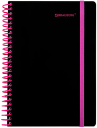 Тетрадь на цветной спирали с пластиковой обложкой и резинкой BRAUBERG, А5, 80 листов, клетка, черный/розовый