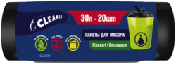 Пакеты для мусора ПНД CLEANIA Standart, 30 л, 47х55 см, 7 мкм, 20 шт/рул, черные