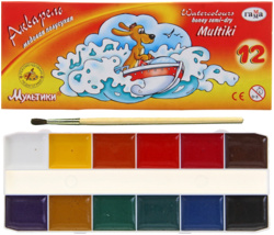 Краски акварельные медовые ГАММА «Мультики», 12 цветов, с кистью