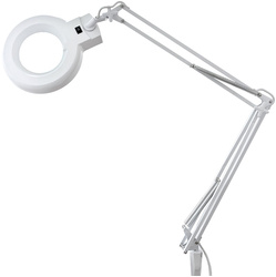 Лупа на струбцине Rexant предопределена для зрительного наращивания всевозможных маленьких предметов или же их фрагментов. Она применяется в косметологии, в тату салонах, при выполнении ювелирных и радиомонтажных дел, при починке часов, в биологии и медицине, в швейном и вышивальном деле, для организации труда людей со слабеньким зрением, а еще для иных дел, где потребуется вспомогательное наращивание и подсветка рабочего поля. Эта оптическая система произведено из линзы, комфортного пантографического механизма и бестеневой подсветки.