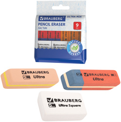 Ластики BRAUBERG «Ultra Mix», 9 шт., 41х14х8 мм/29х18х8 мм, натуральный каучук