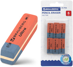 Ластики BRAUBERG «Ultra», 6 шт., 41х14х8 мм, красно-синие, натуральный каучук