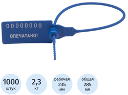 Индикаторная пломба номерная, рабочая длина 235 мм, синяя, 1000 шт/уп