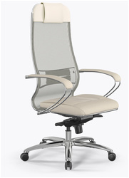 Кресло METTA Samurai SL-1, ткань-сетка/экокожа, молочное, z8.2.1.49