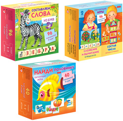 Наряду с развитием логики и формированием навыков чтения и счета дети будут развивать мелкую моторику, необходимую для совершенствования мышления и речи. Все элементы игр выполнены на плотном картоне. Внутри коробки с игрой находится инструкция с простыми правилами. Поставляется в нескольких вариантах без возможности выбора.