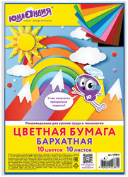 Бумага цветная ЮНЛАНДИЯ, 10 листов, 10 цветов, А5, бархатная, 110 г/м2