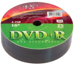 DVD+R диски в тубе VS, 25 штук, 16х, 4,7 Gb, Bulk