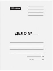 Папка-обложка OfficeSpace серии «Дело» формата А4 предназначена для хранения бумаг. Изделие размером 310220 мм выполнено из немелованного картона белого цвета, плотностью 260 г/м2. Отсутствие скоросшивателя позволяет организовать хранение бумаг без использования дырокола. На лицевой стороне располагаются поля для надписей. Папка вмещает до 200 листов.