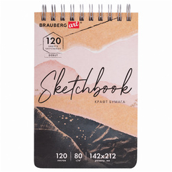 Скетчбук крафт-бумага BRAUBERG ART DEBUT, 120 листов, 142х212 мм, 80 г/м2, гребень, твердая обложка