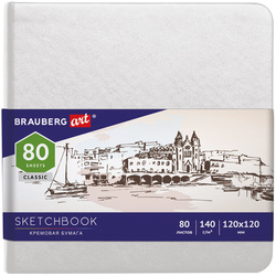 Скетчбук слоновая кость BRAUBERG ART CLASSIC, 80 листов, 120х120 мм, 140 г/м2, кожзам, резинка, белый