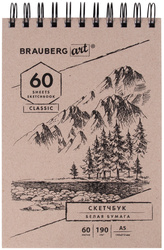 Скетчбук белая бумага BRAUBERG ART CLASSIC, 60 листов, 145х212 мм, 190 г/м2, гребень, твердая обложка