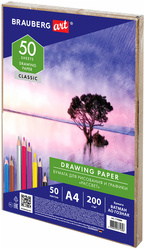 Бумага для рисования и графики BRAUBERG ART, 50 листов, А4, ватман ГОЗНАК, 200 г/м2, в коробке