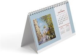 Настольный календарь на 2026 год. Формат 200×115 мм, 12 листов + 2 обложки, мелованная бумага, разрезная сетка, курсор, пружина, подложка: мелованный картон, место для рекламы 200×25 мм. Календарь с репродукциями картин Ведерникова В.А., преподавателя академии живописи Андрияки.